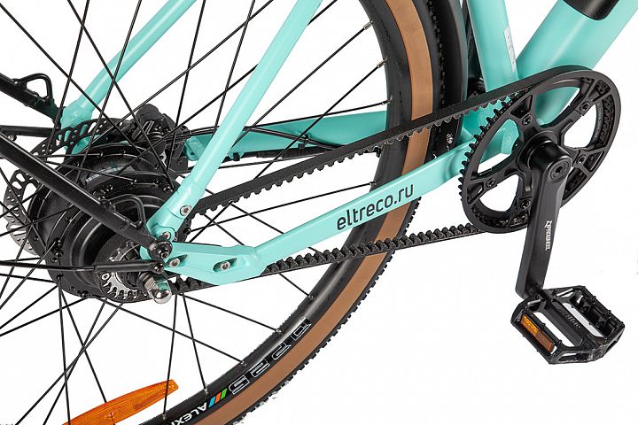 Необычайно лёгкий шоссейный электровелосипед на больших тонких колёсах с ременным педальным приводом и интеллектуальной системой ассистента педалированию — синергия плавных изящных форм, продуманной конструкции, лучших премиальных компонентов и максимального удобства, соединённых вместе инженерами Eltreco для ваших безмятежных ежедневных поездок.