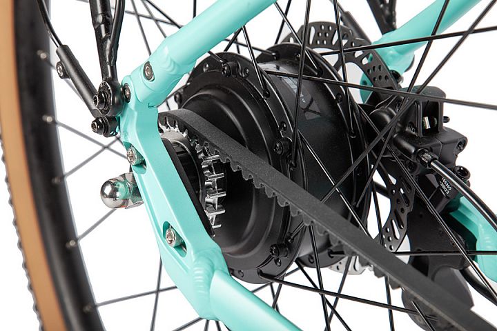 Модель обладает уникальными для электровелосипедов характеристиками: ременной привод долговечнее цепного. Он не требует смазки, не подвержен коррозии, легче и надёжнее чем цепь. А ещё ремень вместо цепи максимально эстетично смотрится в сочетании с общим продуманным дизайном этой модели!