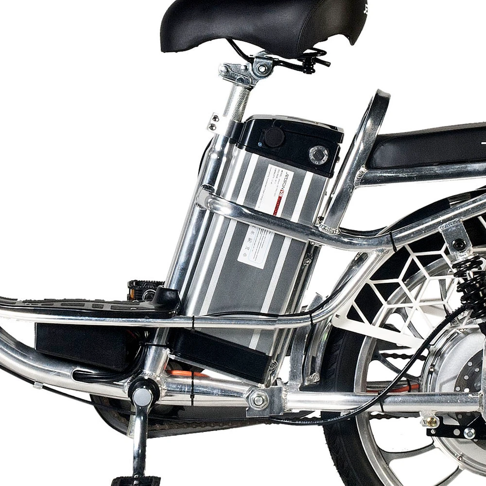 С диаметром колес 20 дюймов, этот электровелосипед обеспечивает отличную устойчивость и маневренность, что особенно важно при движении по неровным поверхностям. Дисковая гидравлическая тормозная система гарантирует высокую эффективность торможения, что повышает безопасность и уверенность во время поездок на высоких скоростях.