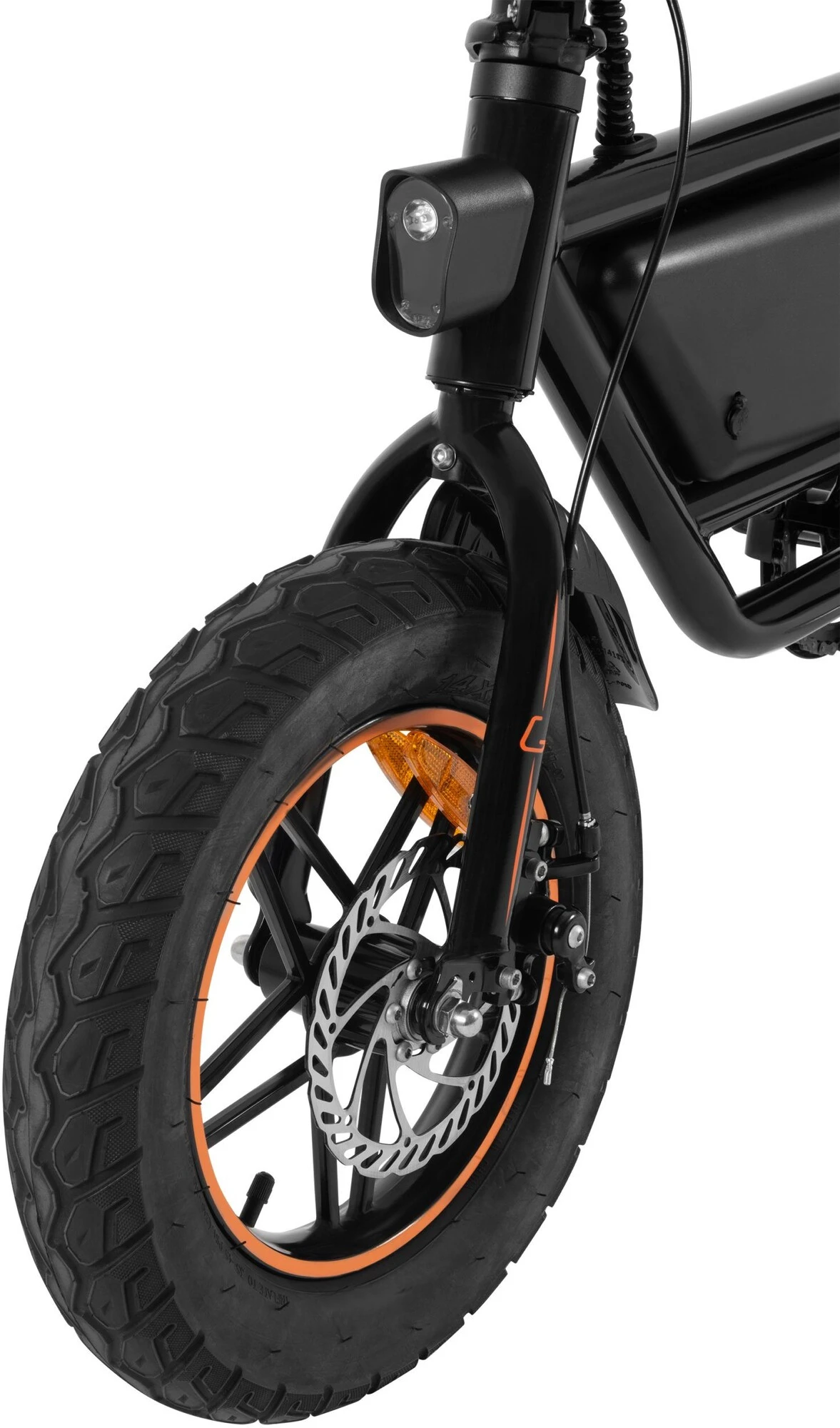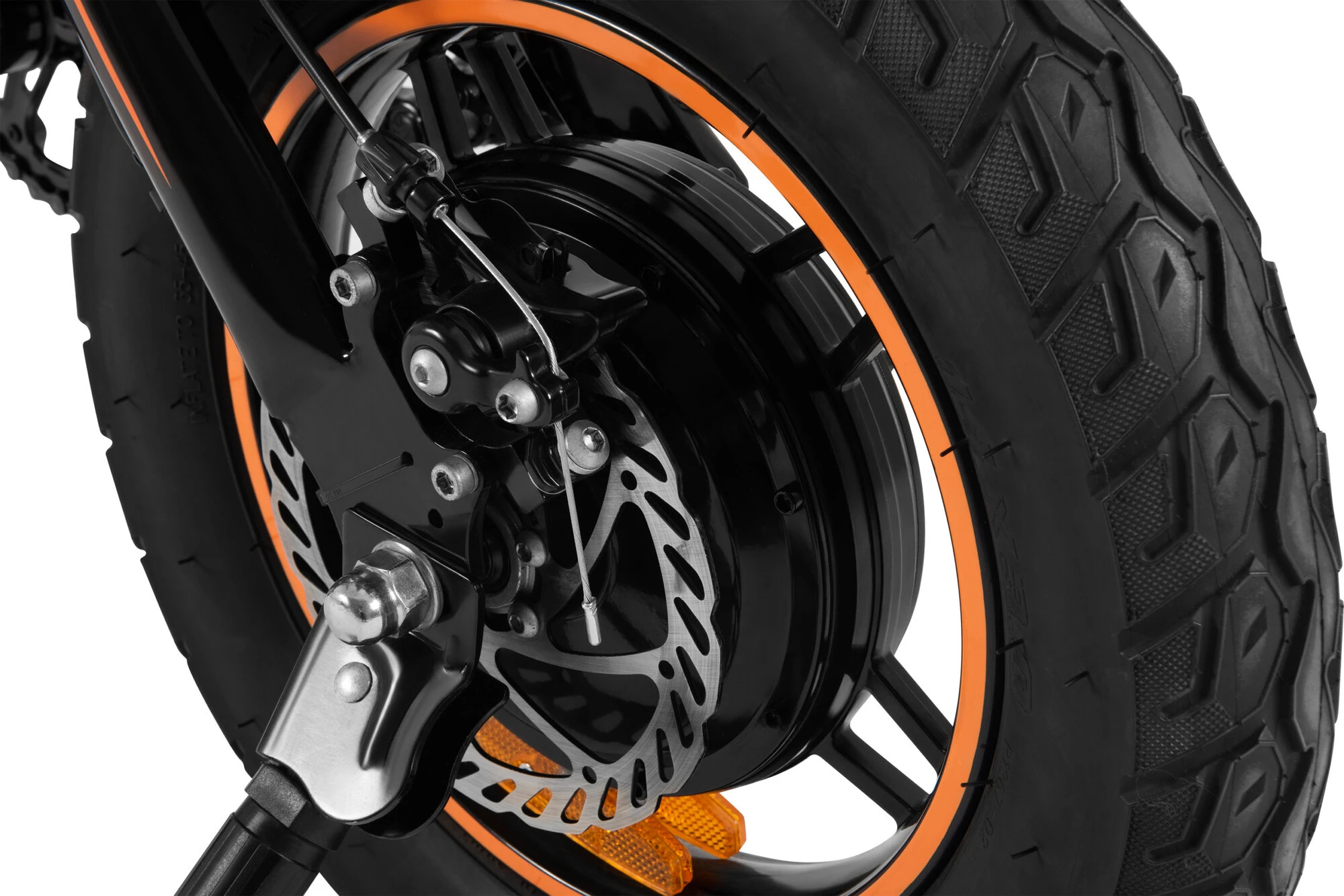 Максимальная нагрузка электровелосипеда составляет 120 кг, что позволяет использовать его как для одиночных поездок, так и для поездок с дополнительным грузом. Диаметр колес в 14 дюймов обеспечивает хорошую маневренность и стабильность на дороге, а дисковая тормозная система гарантирует надежное и безопасное торможение в любых условиях.