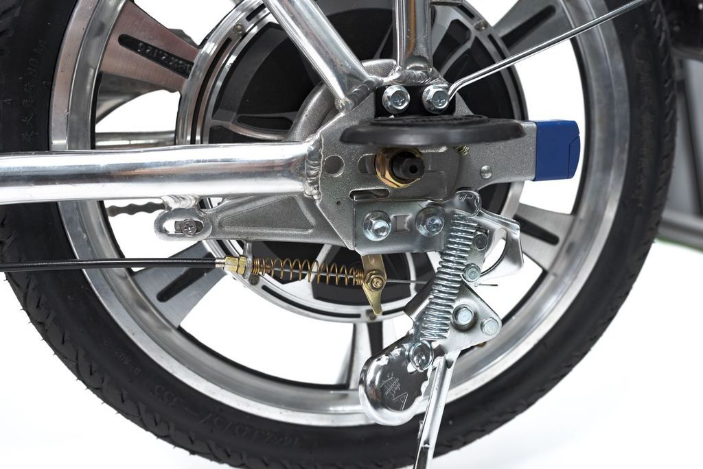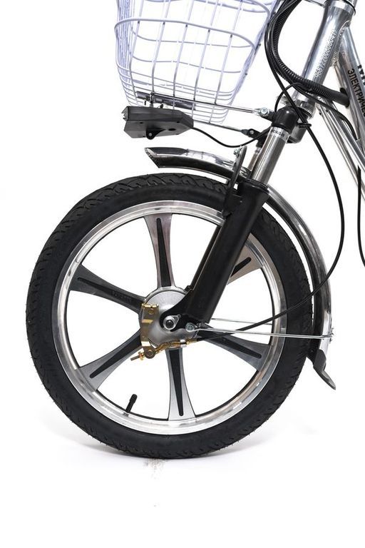 - Спереди установлена вилка, которая сглаживает неровности и позволяет наслаждаться комфортной плавной ездой. А также продлевает срок службы электровелосипеда, снижая воздействия от вибрации и ударов.