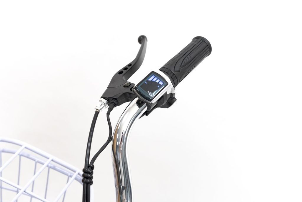 - Электровелосипед в движение приводит удобная рукоятка
