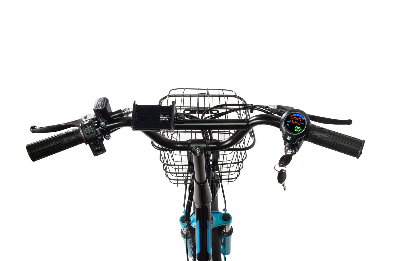Электровелосипед имеет двухколесную конструкцию с диаметром колес 18 дюймов, что обеспечивает отличную маневренность и комфорт при езде по городским улицам и легкому бездорожью.