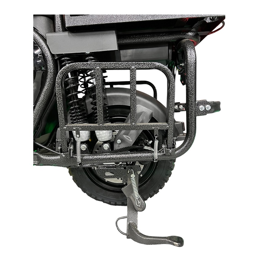 Управляемость и комфорт на сложном рельефе обеспечиваются не только мотором, но и грамотной конструкцией шасси. Универсальные 16-дюймовые колёса с агрессивным протектором гарантируют надёжное сцепление на разных поверхностях, от грязи до щебня, а их размер оптимален для поддержания баланса между стабильностью и проходимостью. Рама, прошедшая расчёты на нагрузку в четверть тонны, жёстко связывает все узлы, минимизируя изгибы и вибрации, что напрямую влияет на точность руления и общую долговечность конструкции в условиях постоянного стресса.