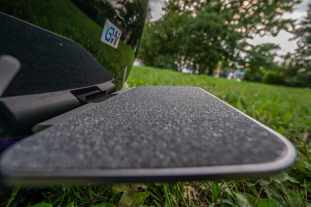 - Складные педали на Nikola Plus отличаются достаточно большой длиной и шириной. Сверху педали покрыты “наждачкой” для исключения возможности скольжения подошвы райдера.
