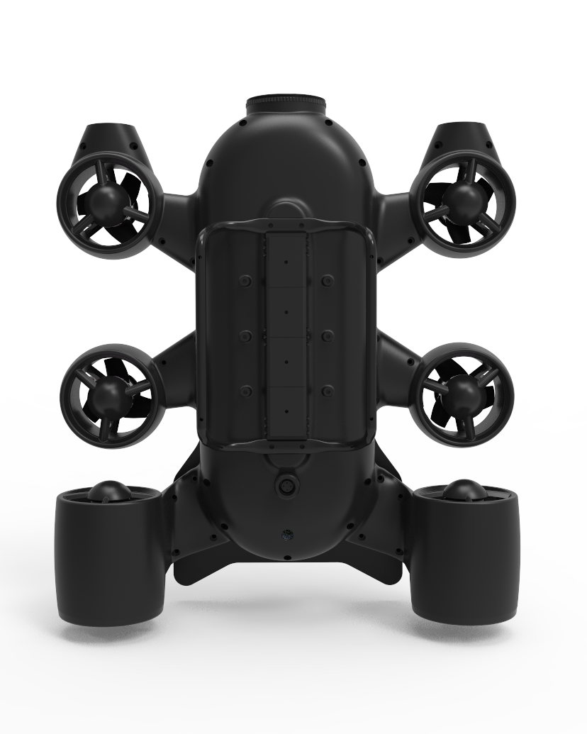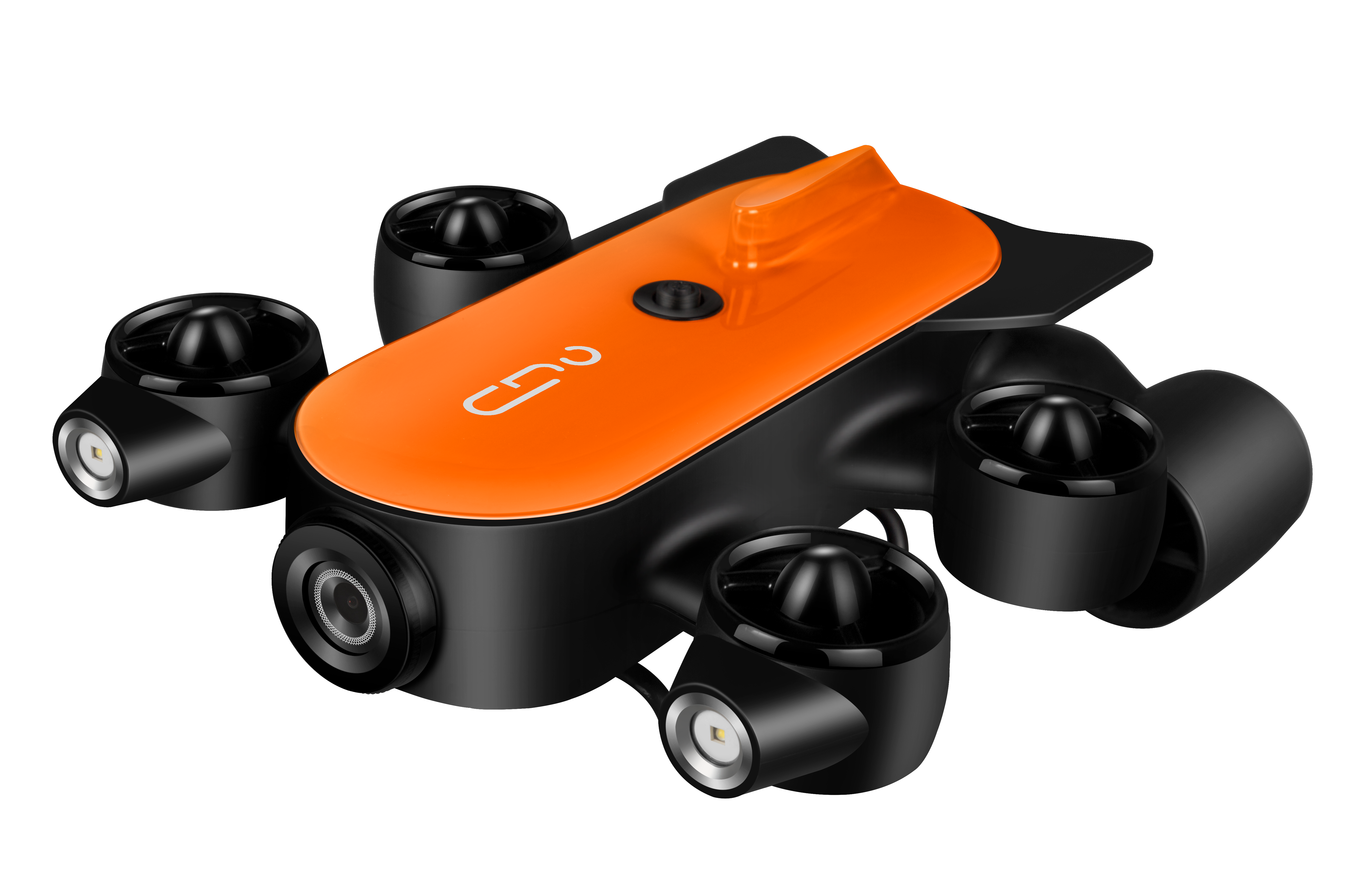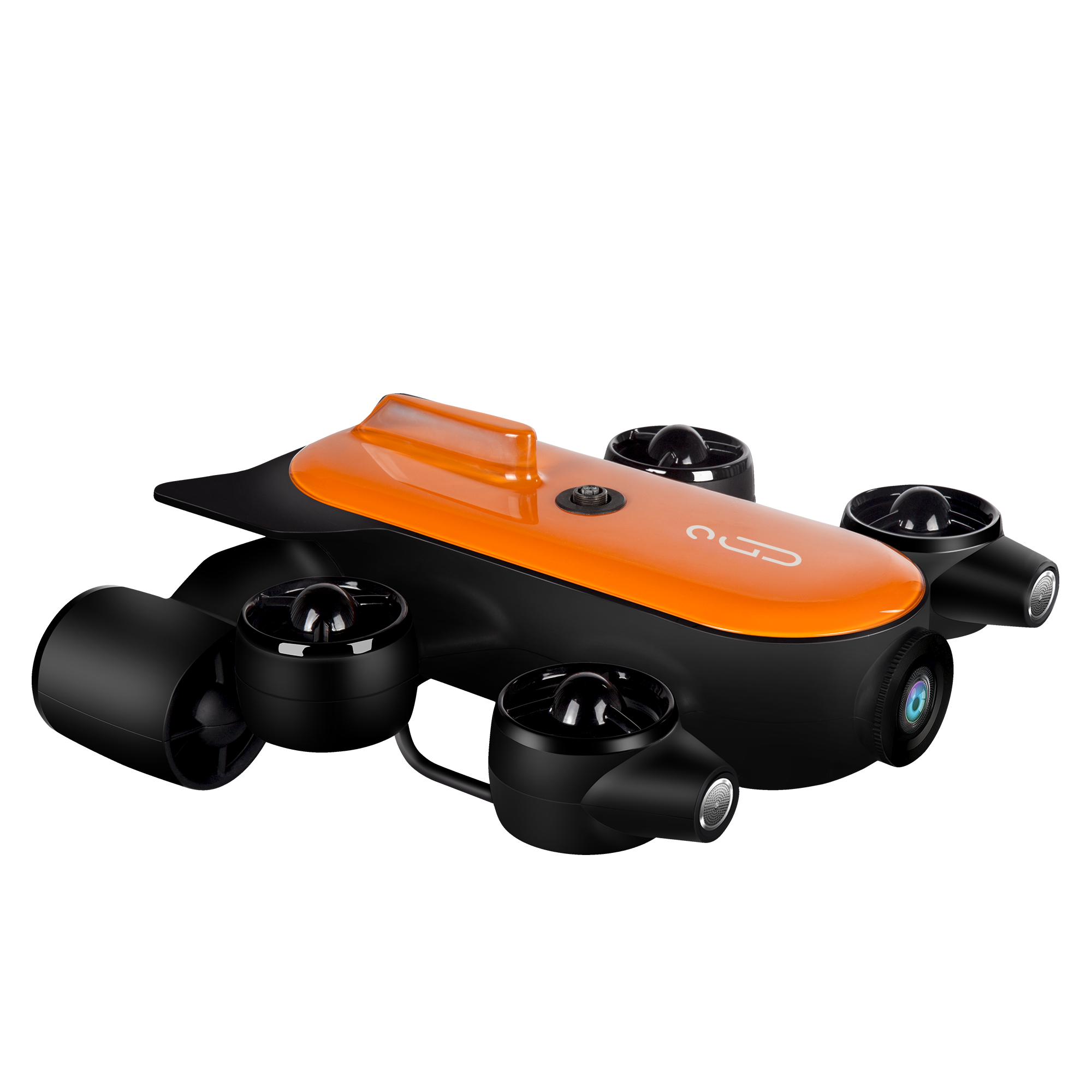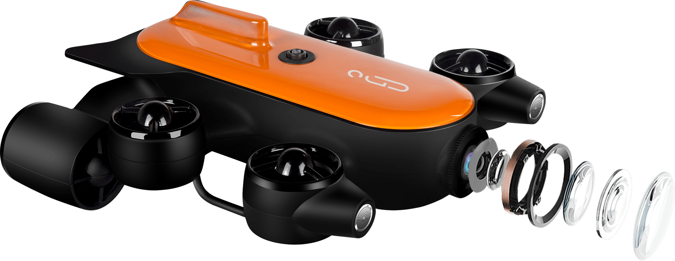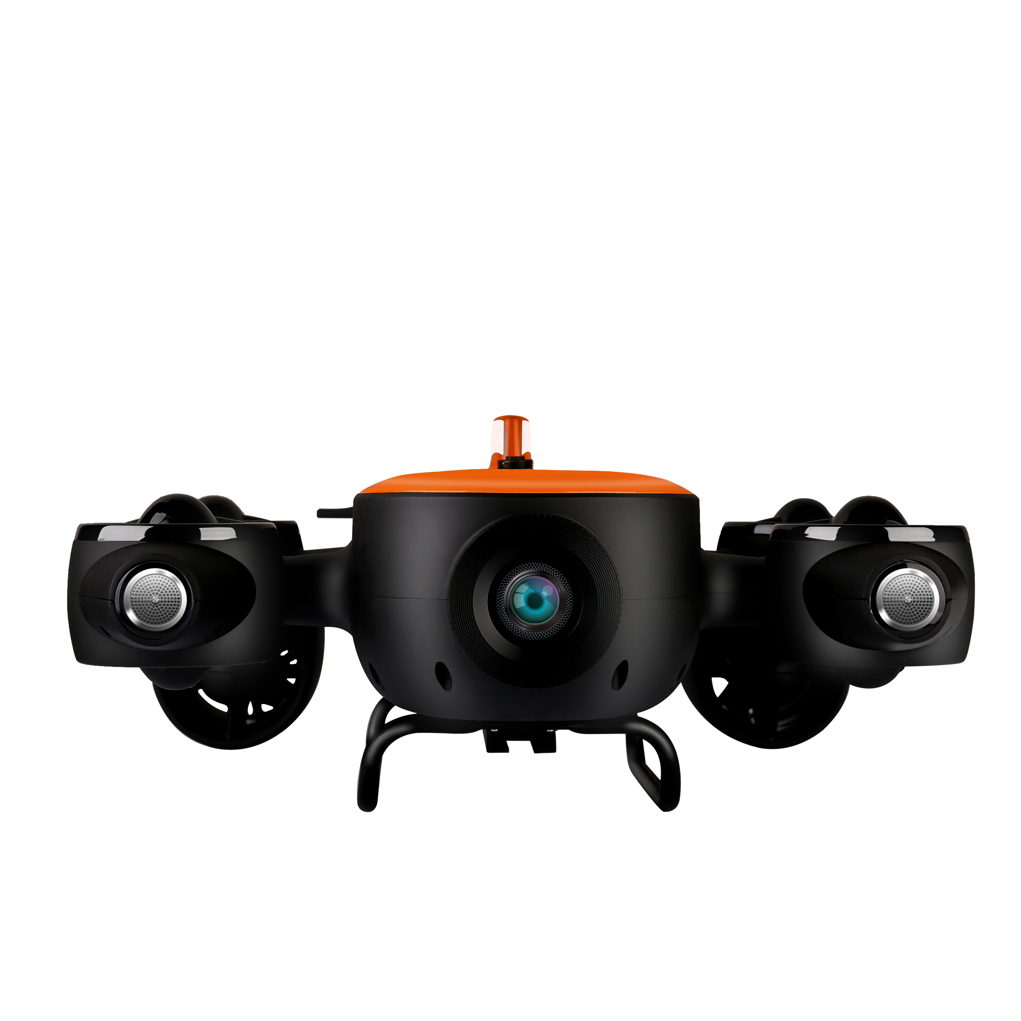 Камера подводного драна снимает видео с помощью двух светодиодных прожекторов, которые в сумме дают 3000 люмен, плюс можно установить любой из двух включенных цветовых корректирующих фильтров на его 160-градусный объектив F2.5 (для сохранения снимков без искусственного освещения. от синего или зеленого). Кадры записываются в разрешении 4K, а также транслируются по кабелю связи/управления дрона со скоростью 1080p/30 кадров в секунду.