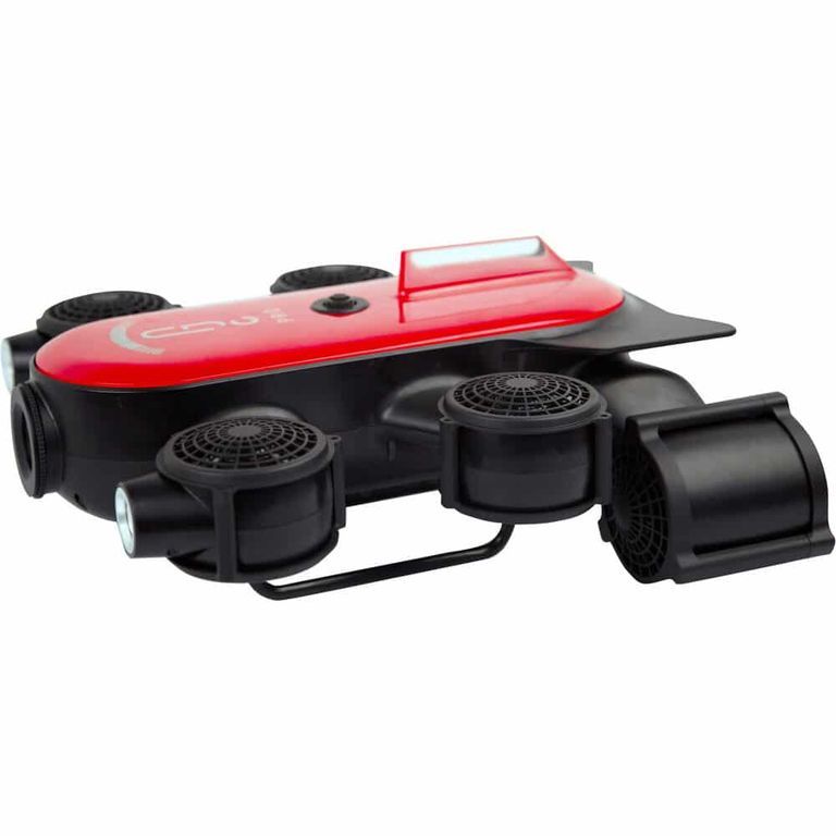 Камера подводного драна снимает видео с помощью двух светодиодных прожекторов, которые в сумме дают 3000 люмен, плюс можно установить любой из двух включенных цветовых корректирующих фильтров на его 160-градусный объектив F2.5 (для сохранения снимков без искусственного освещения. от синего или зеленого). Кадры записываются в разрешении 4K, а также транслируются по кабелю связи/управления дрона со скоростью 1080p/30 кадров в секунду. *Роботизированная рука поставляется отдельно.